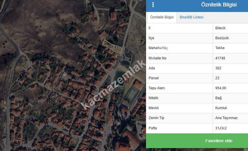 *Bilecik İli, Bozüyük ilçesi, Tekke Mahallesinde, Kumluk  mevkiinde bulunan 382/23 parsel nolu, 954 metrekarelik arsamız, satışa sunulmuştur.