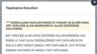 Emsal 0,60 ve 2 kat konut yapılabilir.