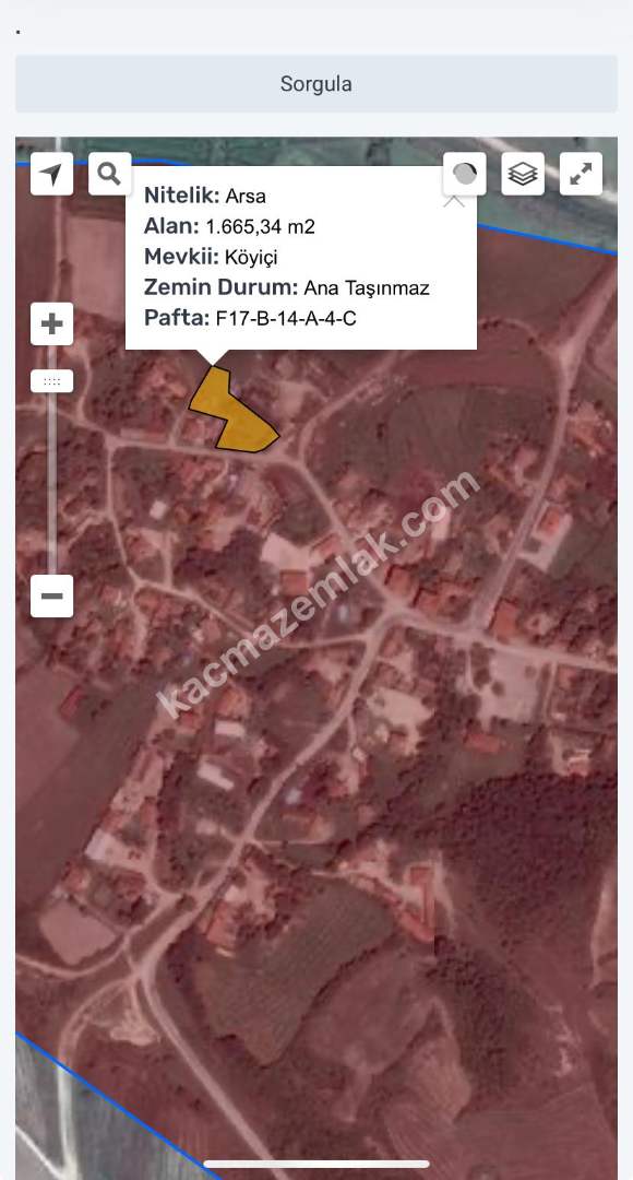 Toplam alanı 1665 m2 olan arsamız Köy içi imar planında kalmaktadır,