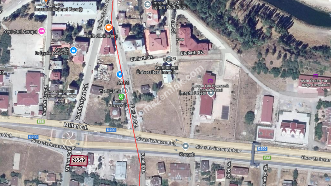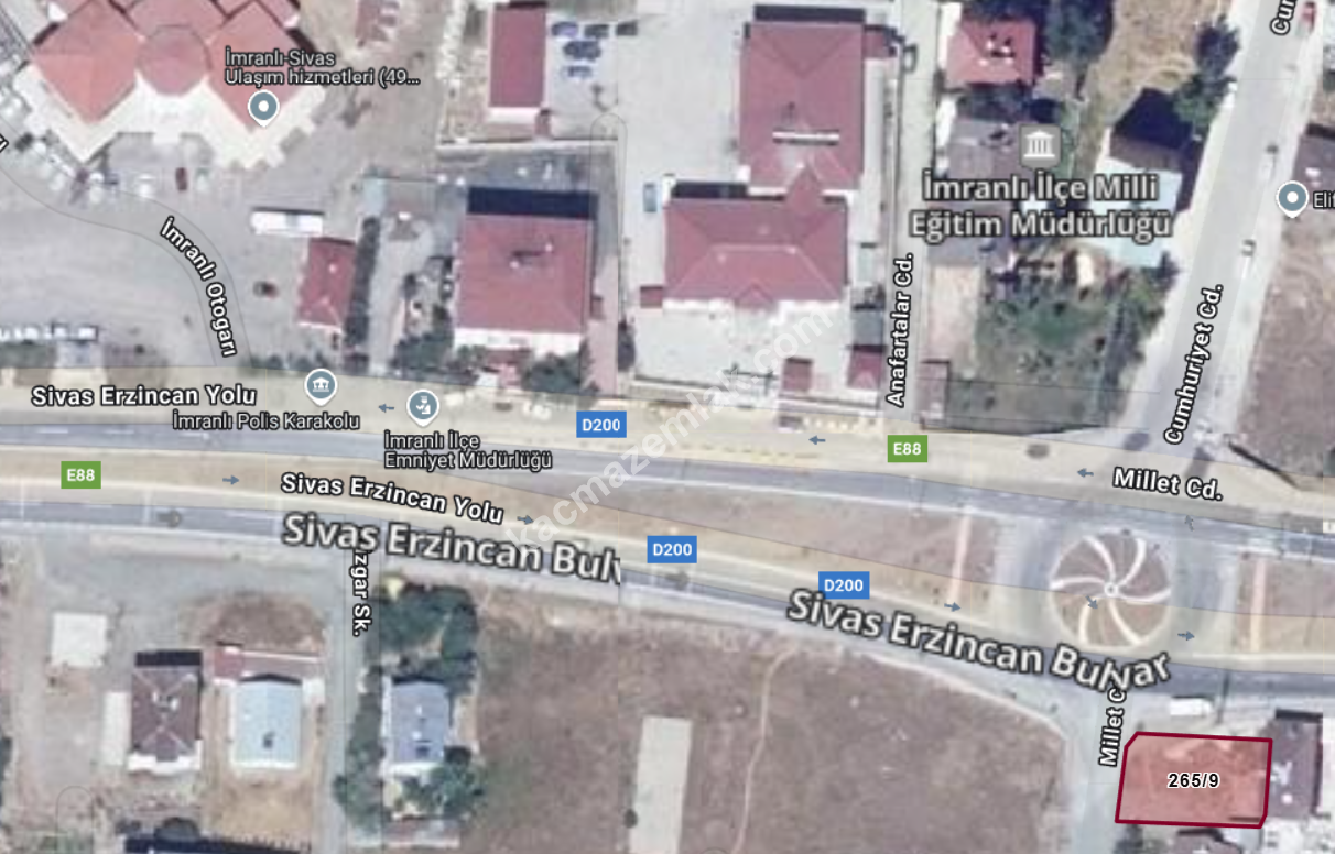 • İmranlı İlçe Milli Eğitim Müdürlüğü arsanın karşısında yer almaktadır