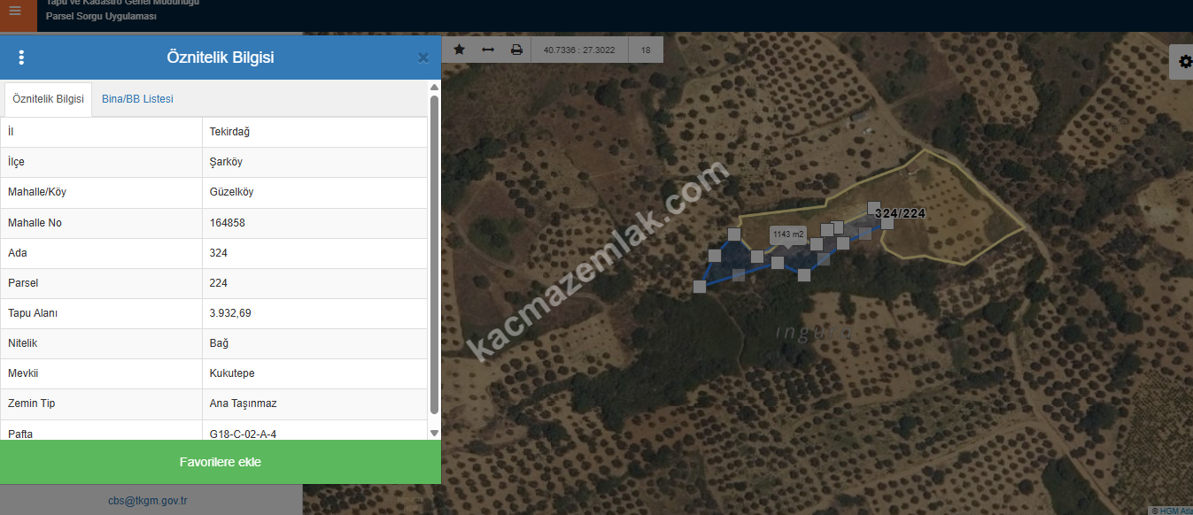 TAPUDA NİTELİĞİ BAĞ OLARAK GEÇMEKTEDİR.