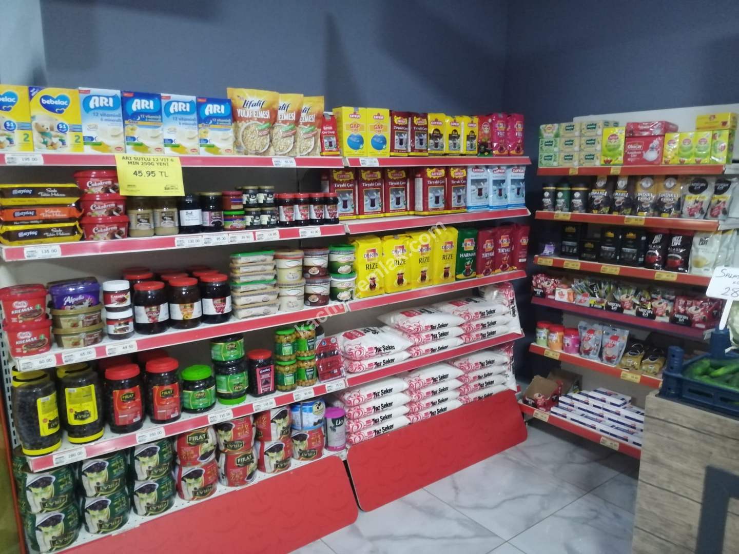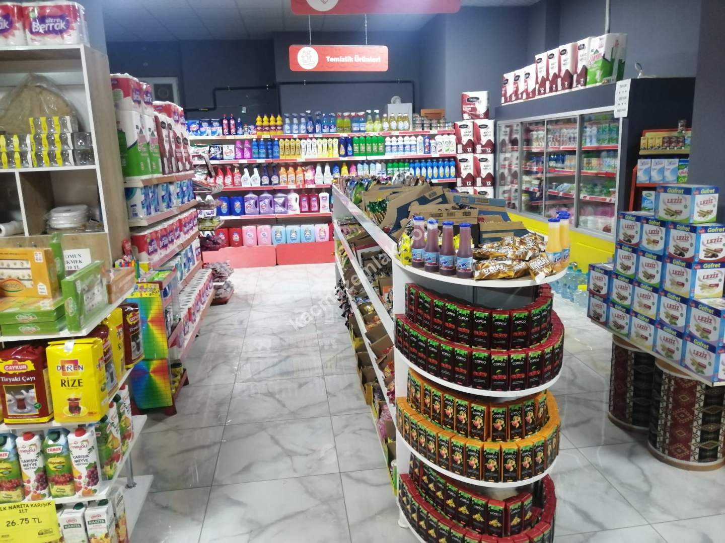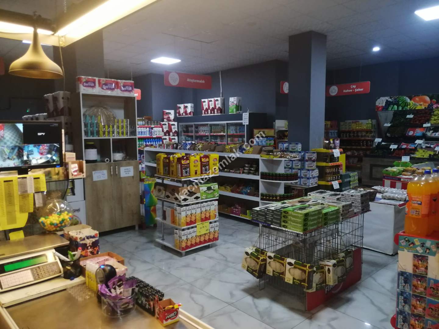 MARKETİMİZİN İÇERİSİNDE 27 ÜNİTE RAF, SÜTLÜK DOLABI, TAVUK DOLABI, SEBZE REYONU, KAMERA SİSTEMİ, BARKOD OKUYUCU, ETİKET MAKİNESİ...VS GİBİ TÜM İHTİYAÇLARI KARŞILAYACAK MAKİNELER VE TEÇHİZATLARI VARDIR.