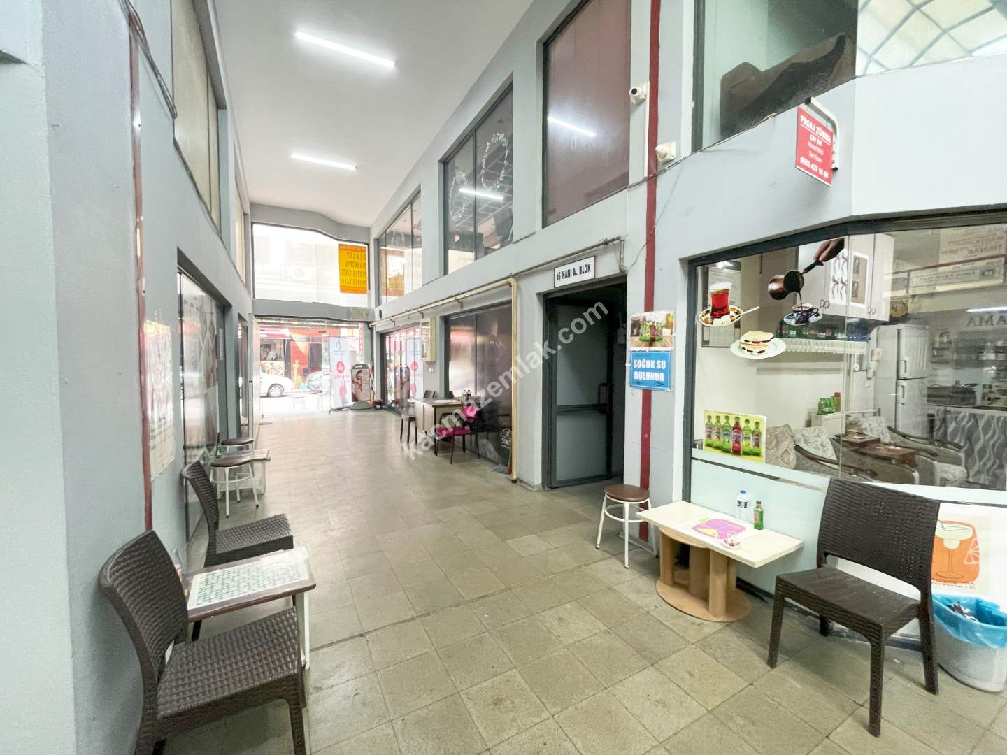 Dükkanımız hem sokaktan hem de iş hanından girişe sahiptir. İstenirse ikiye bölünerek iki farklı iş için ayrı ayrı kullanılabilir.