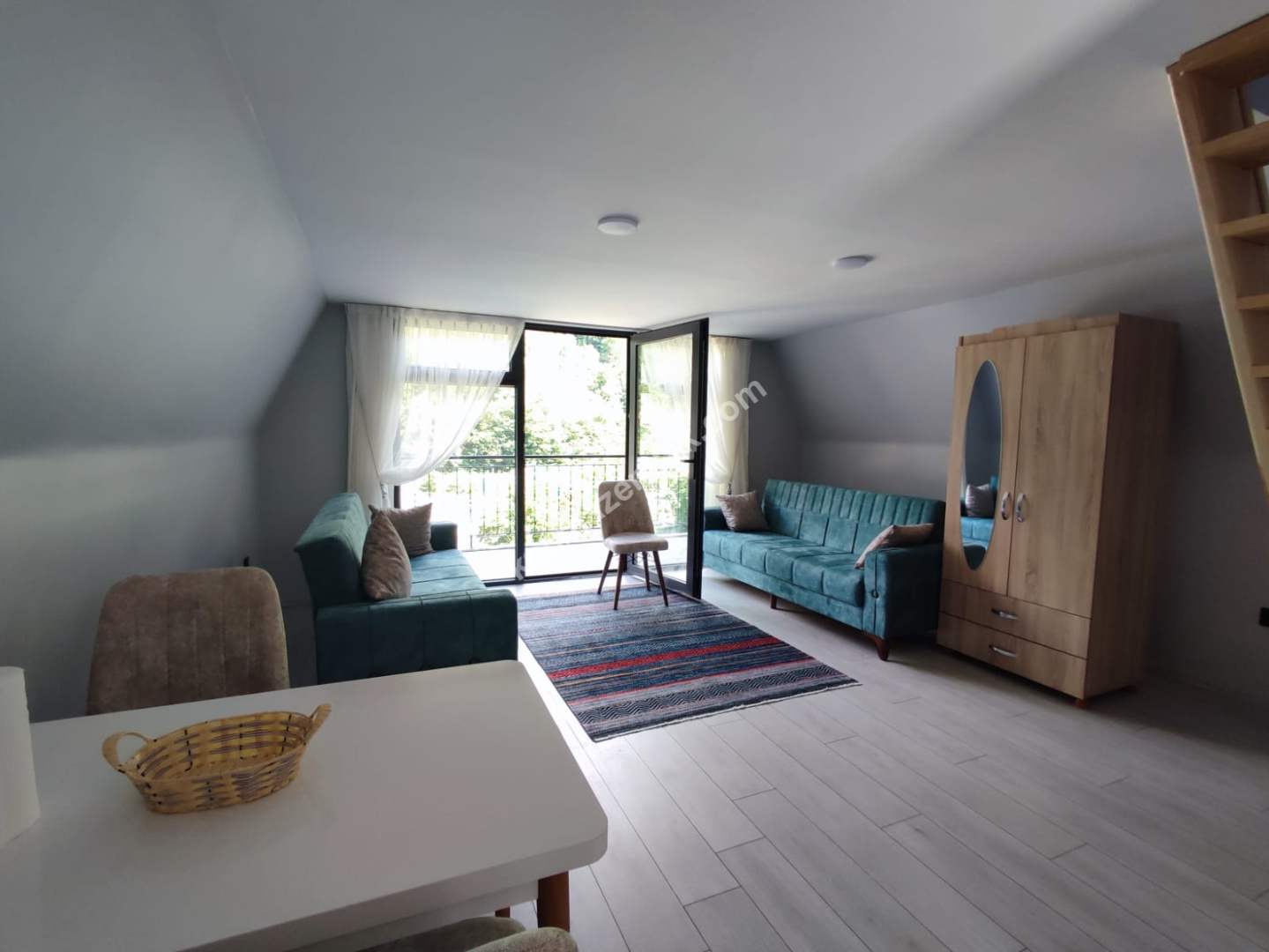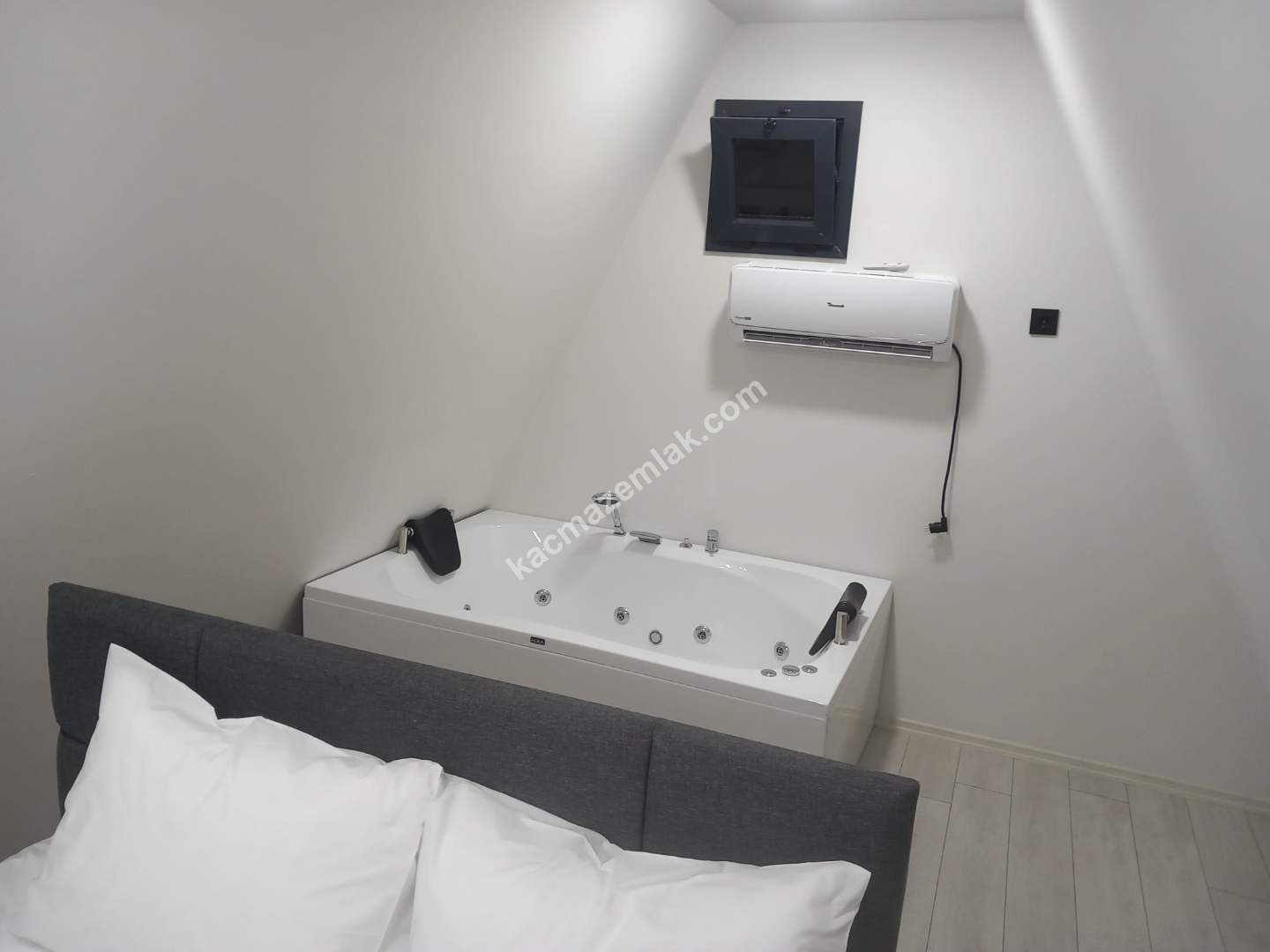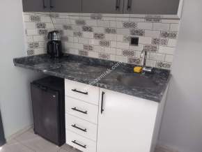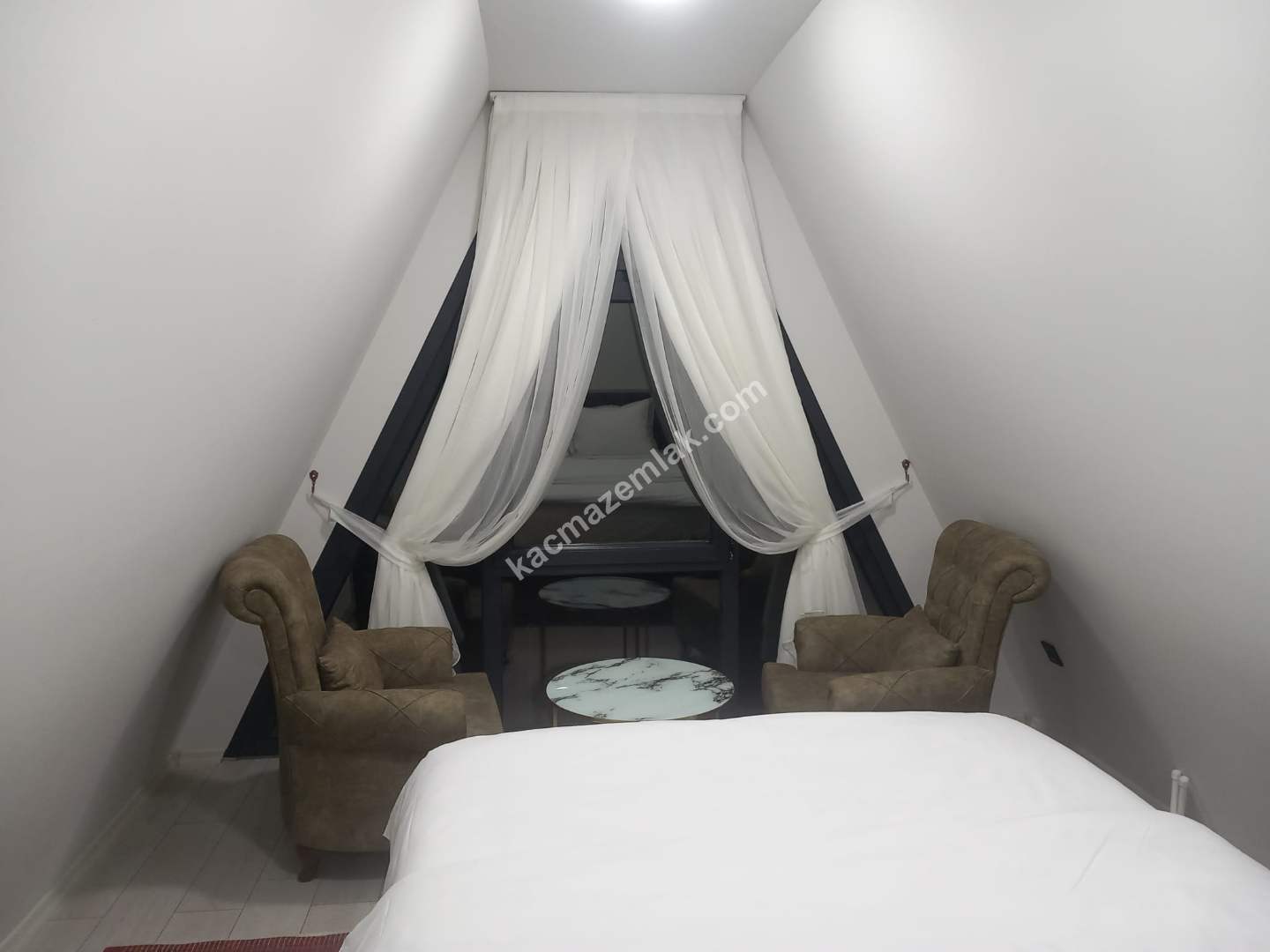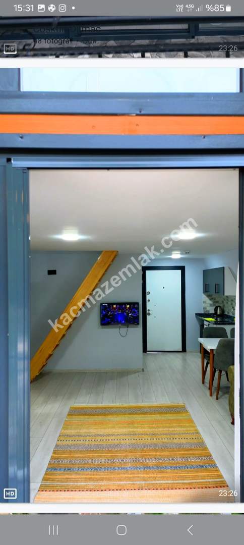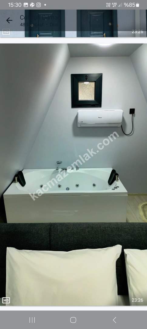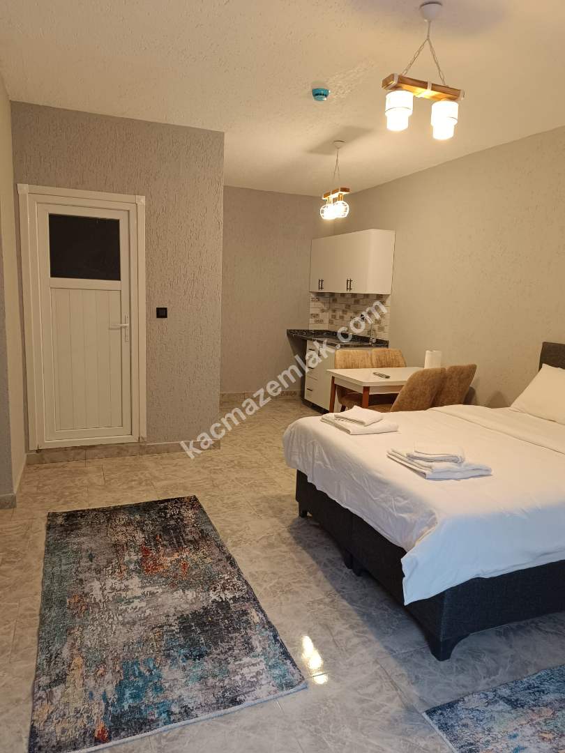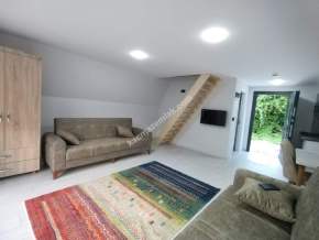 BUNGALOWUN ALT KATI OTURMA ODASI,MİNİ MUTFAK,VE BALKON,ÜST KATI YATAK ODASI VE JAKUZİ MEVCUT