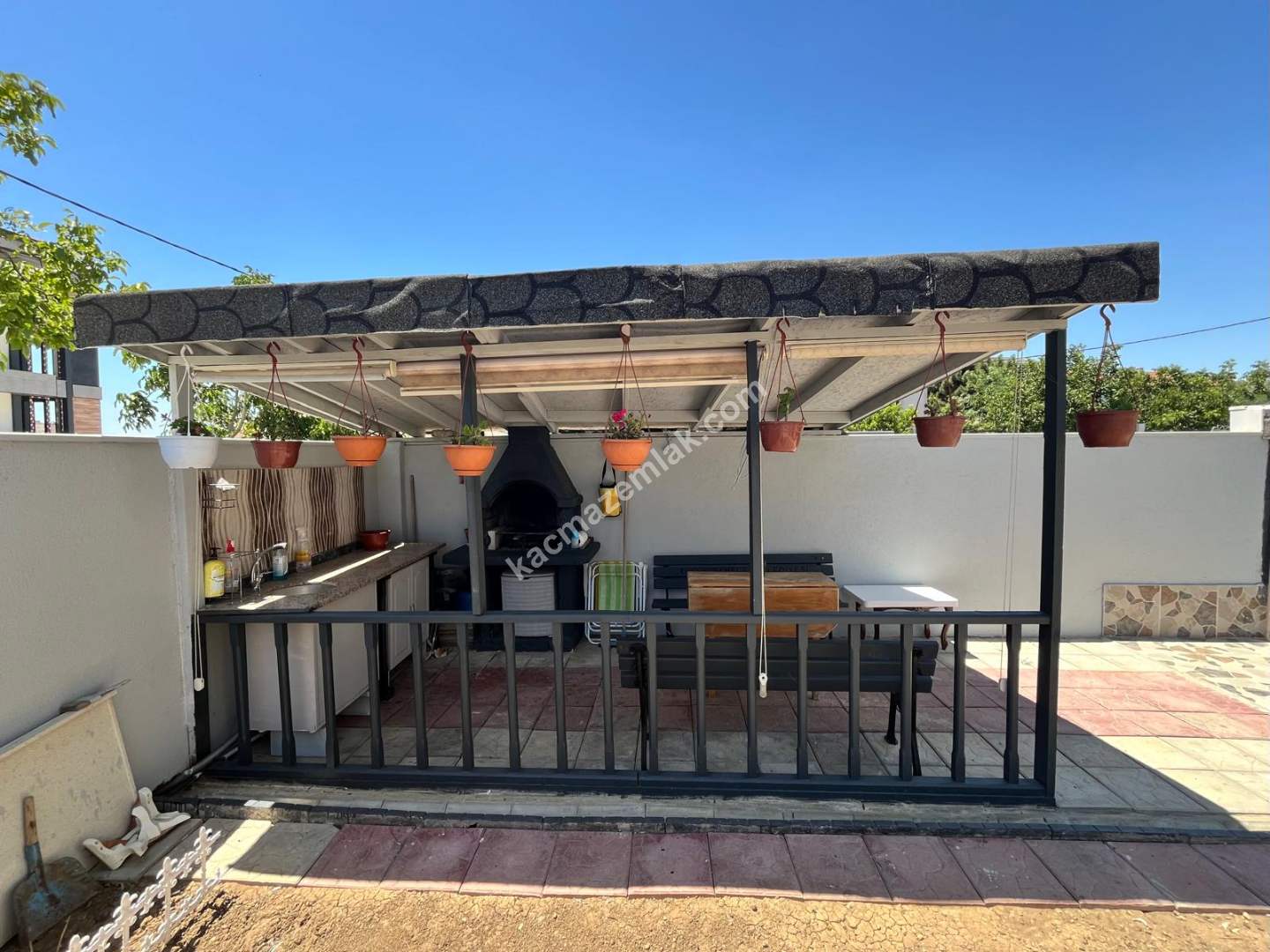 * Yan bahçede mangal için verandalı barbekü, lavabo ve tezgah mevcuttur. Masa koymaya da gölge alan var.