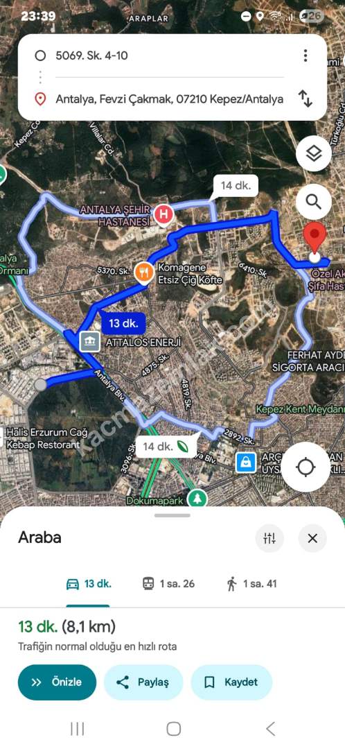 Akdeniz Şifa Hastanesi, Tramvay Durağı 5 dk,
