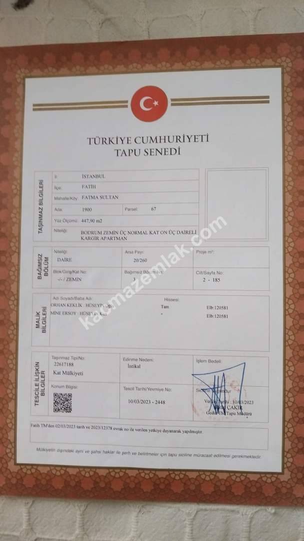 İSTANBUL Fatih'te Satılık Daire İlanları